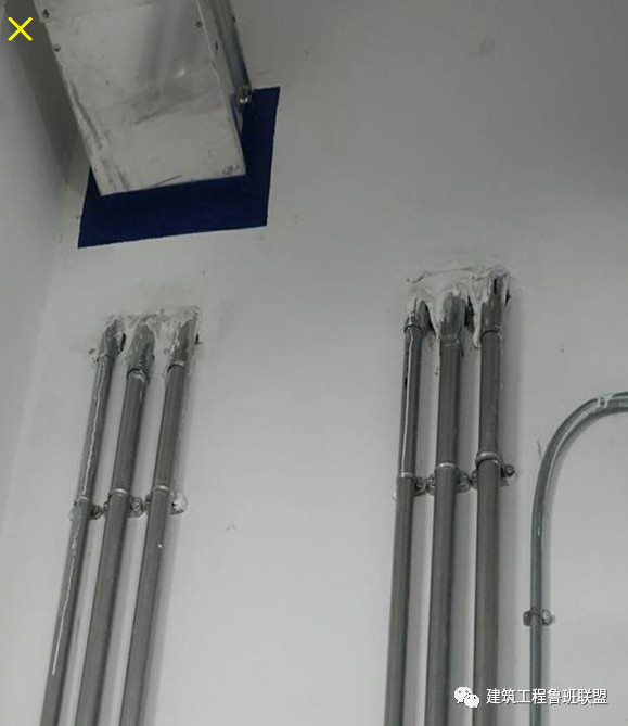 電管敷設(shè)半明半暗,與墻體體交接處粗糙。