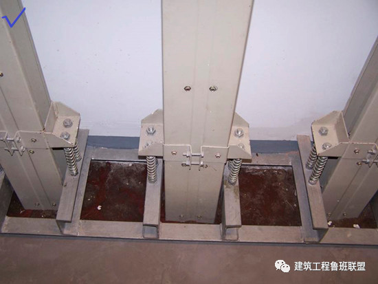 正確:垂直敷設(shè)支撐在樓板處應(yīng)采取專用彈簧減震支撐,減震裝置與插接母線垂直,安裝應(yīng)牢固。穿越樓板防火封堵措施到位。