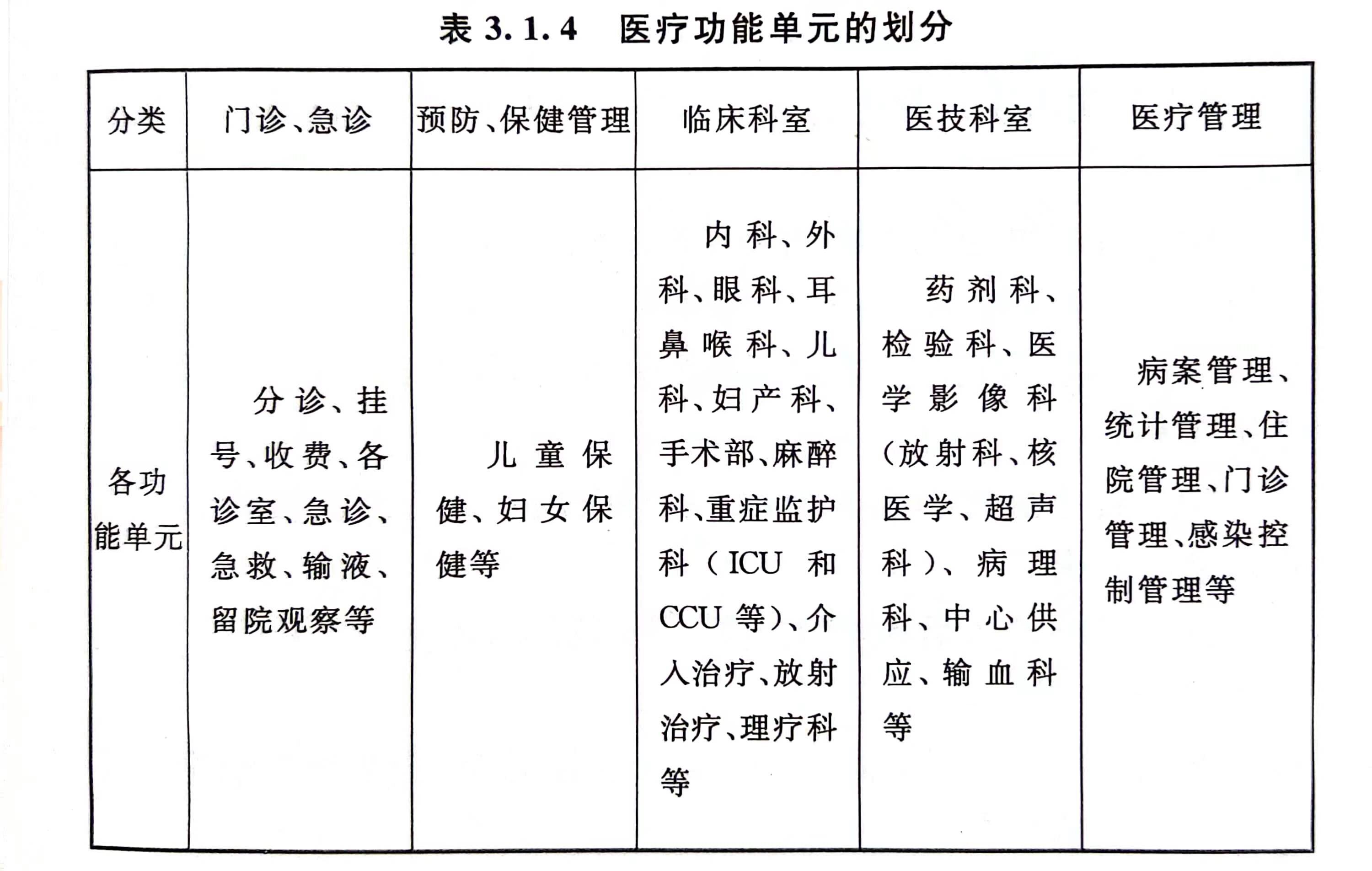 3.1.4醫(yī)療功能單元的劃分宜符合表3.1.4的規(guī)定。